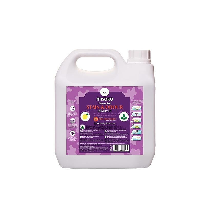 Спреят MISOKO с аромат на лимон с формула PRO-BACTERIA™ неутрализира миризми и петна от домашни любимци. Икономичната опаковка от 2000 мл е идеална за професионалисти и домакинства с няколко домашни любимци.